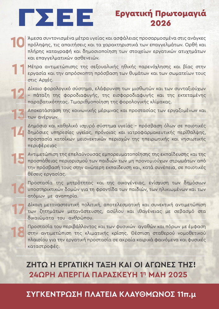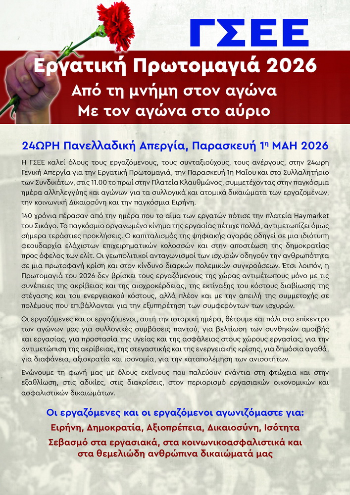 Διακήρυξη Πρωτομαγιάς 2026